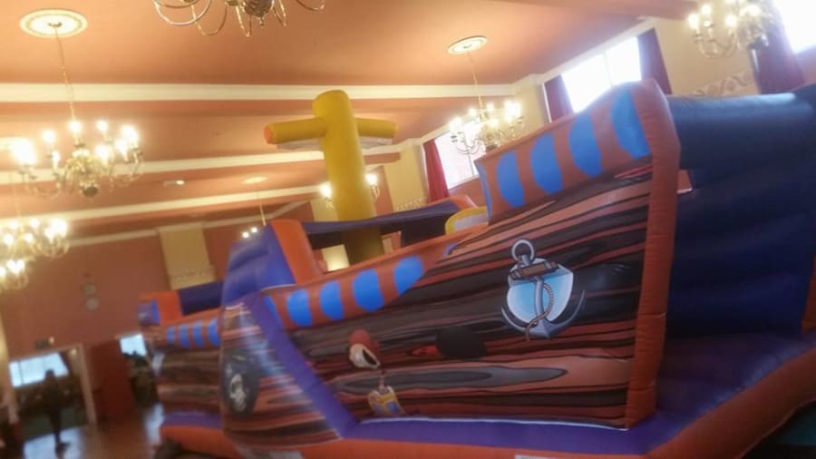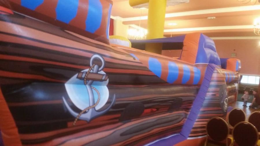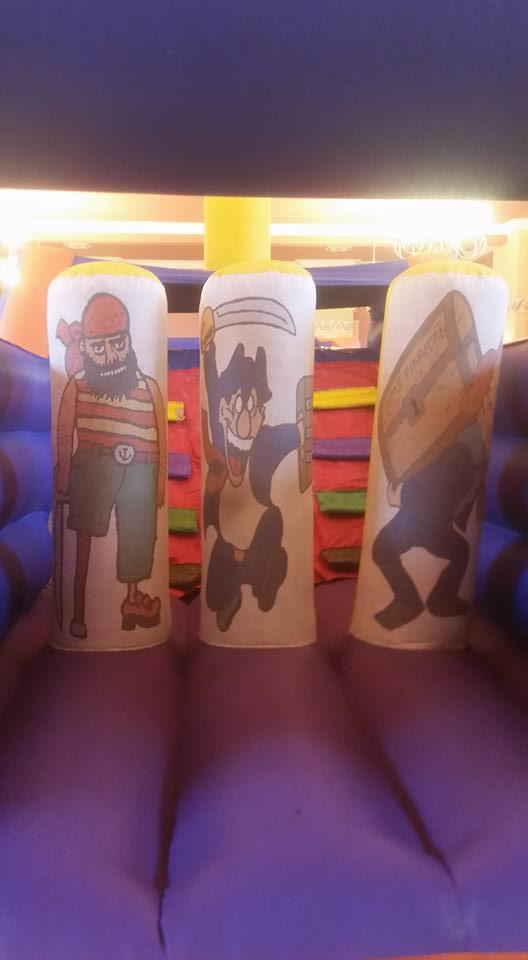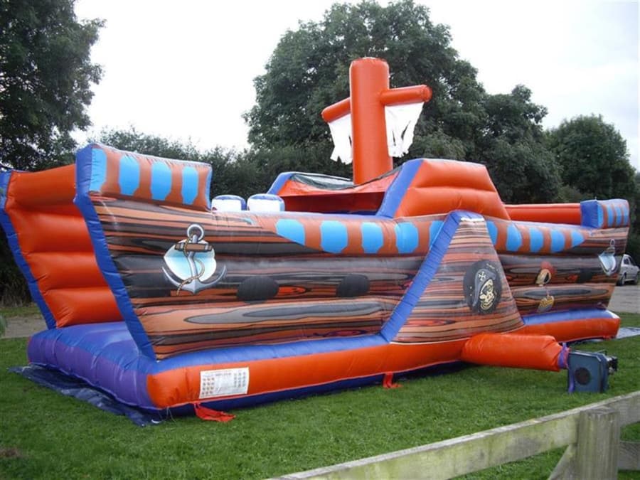 Ahoy pirate fans This 32ft long giant pirate-themed obstacle/bouncy castle comes with steps climbing up to a slide and then squeeze through and a biff bash a fantastic, fun-filled obstacle/assault course that will give your children hours of never ending fun