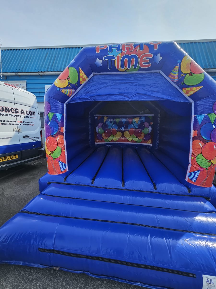 Experience the convenience of our Blue Party Time Bouncy Castle (12x15) in Wigan, Bolton, St Helens, Preston, Warrington, Chorley, Leigh. We proudly offer our services across these areas, ensuring a hassle-free delivery and setup for your event. Our dedicated team is committed to providing you with the best experience, so you can focus on making memories without any worries. 📦