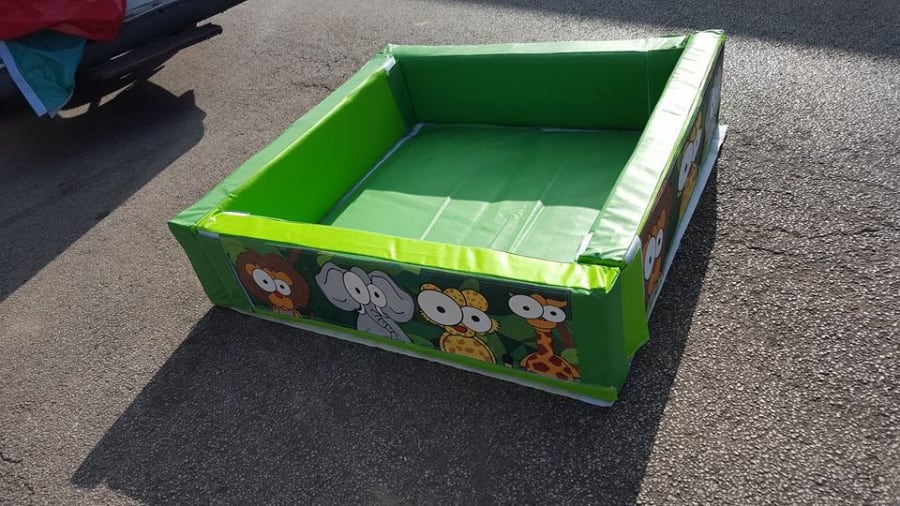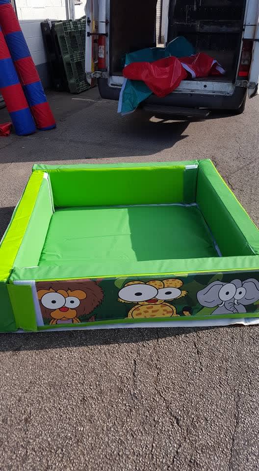 This foam ball pool consists of 4 modular side sections each measuring 120cm . Complete with padded base.