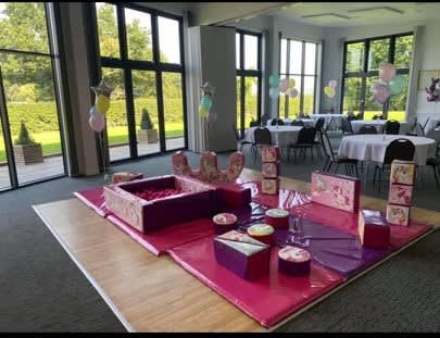 This amazing design in vibrant Pink and purples, perfect for the little princess's, this would be a amazing addition to the party for your younger ones to enjoy, This can even been hired along side one of our soft play sets or even an indoor castle