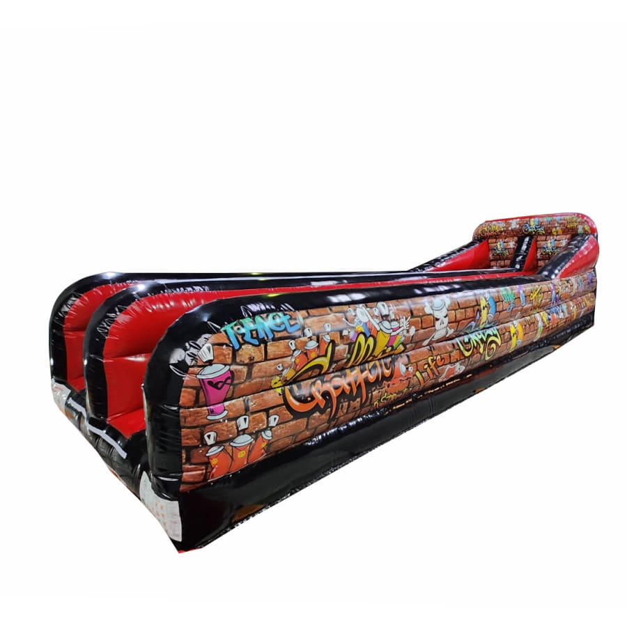 The competitors then take it in turns to run as far and as fast as they can down the inflatable lanes of the bungee run, marking there best position before being pulled back down the lane by the bungee, who ever gets their marker the furthest is the winner why not turn the game into the best out of 3.