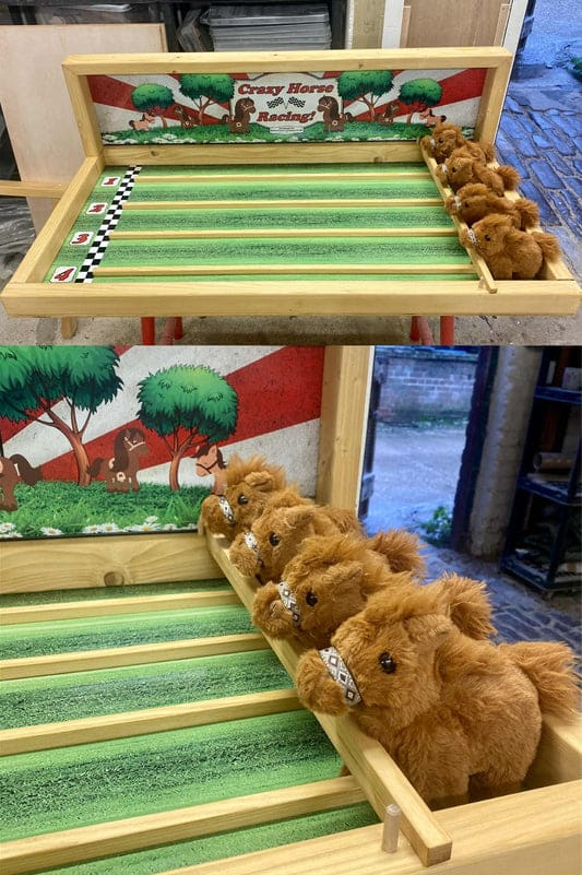 Horse Racing is an exciting handmade wooden tabletop carnival game that’s ready to play and guaranteed to draw a crowd. Featuring four racing lanes, this fun, competitive attraction is perfect for fetes, fairs, fun days, festivals, corporate events and charity fundraisers.